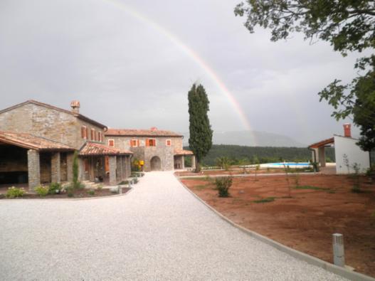 Zwei komplett renovierte Steinhhäuser in Zentral-Istrien zum Kauf an. Größe des Grundstückes beträgt gesamt ca. 130.000 m2. Davon sind mindestens 5.800 m2 Bauland und der Rest ist Ackerland, Weideland, Wald und Weingarten. Beide Häuser sind unabhängig voneinander zu bewohnen. Das kleinere Haus kann in der Wohnfläche noch erweitert werden indem man den offenen Bereich (ca. 30 m2) schließt und anbindet im EG. Diese zwei Steinhäuser sind so plaziert das diese einen fantastischen Blick auf die umliegende Hügel, Wälder und Täler haben. Beim Renovierung sind ausschließlich Materialien erstklassige Qualität verwendet worden. Den Details, wie sichtbare Steinumrandung der Fenster, Holzdecken, Böden, Vollholzinnentreppen geben den Häusern die Besonderheit. Große Wohnbereich mit Kamin stellt den Mittelpunkt des Objekten dar. Fussbodenheizung, sowie Zentral-Gas-Heizung im ganzen Haus. Erdgeschosse beide Häuser sind Wohnbereiche und in den Obergeschossen sind Schlafräume mit Badezimmer. Schöne Terrassen mit tollem Blick. Es gibt 2 Zufahrten mit funkgesteuerte elektrische Einfahrtstore und das gesamte Grundstück ist ausreichend mit Sensorleuchten versehen. Die Liegenschaft ist umzäunt. Romantische, ruhige Lage. Entfernung vom Meer 8 km.